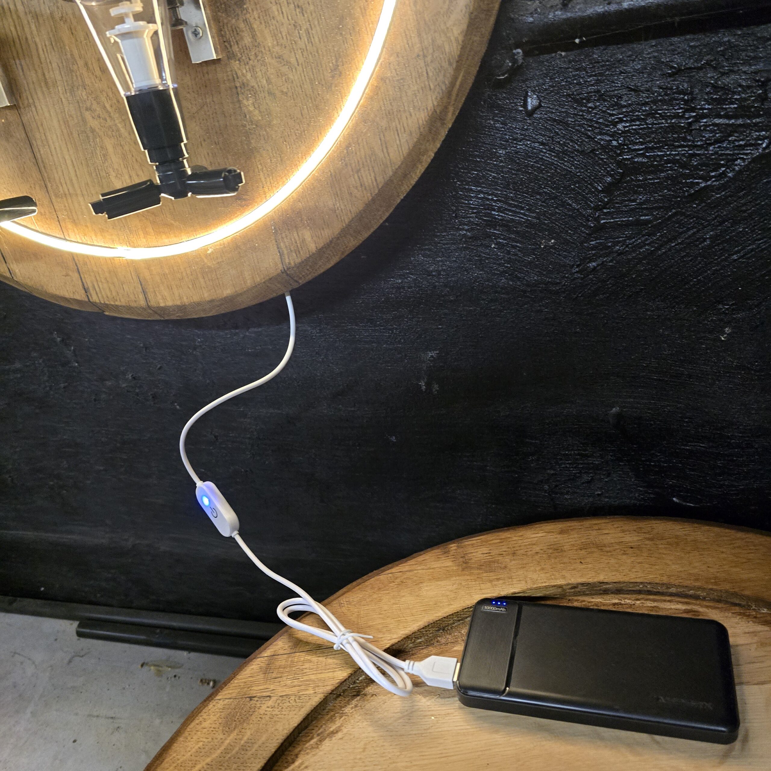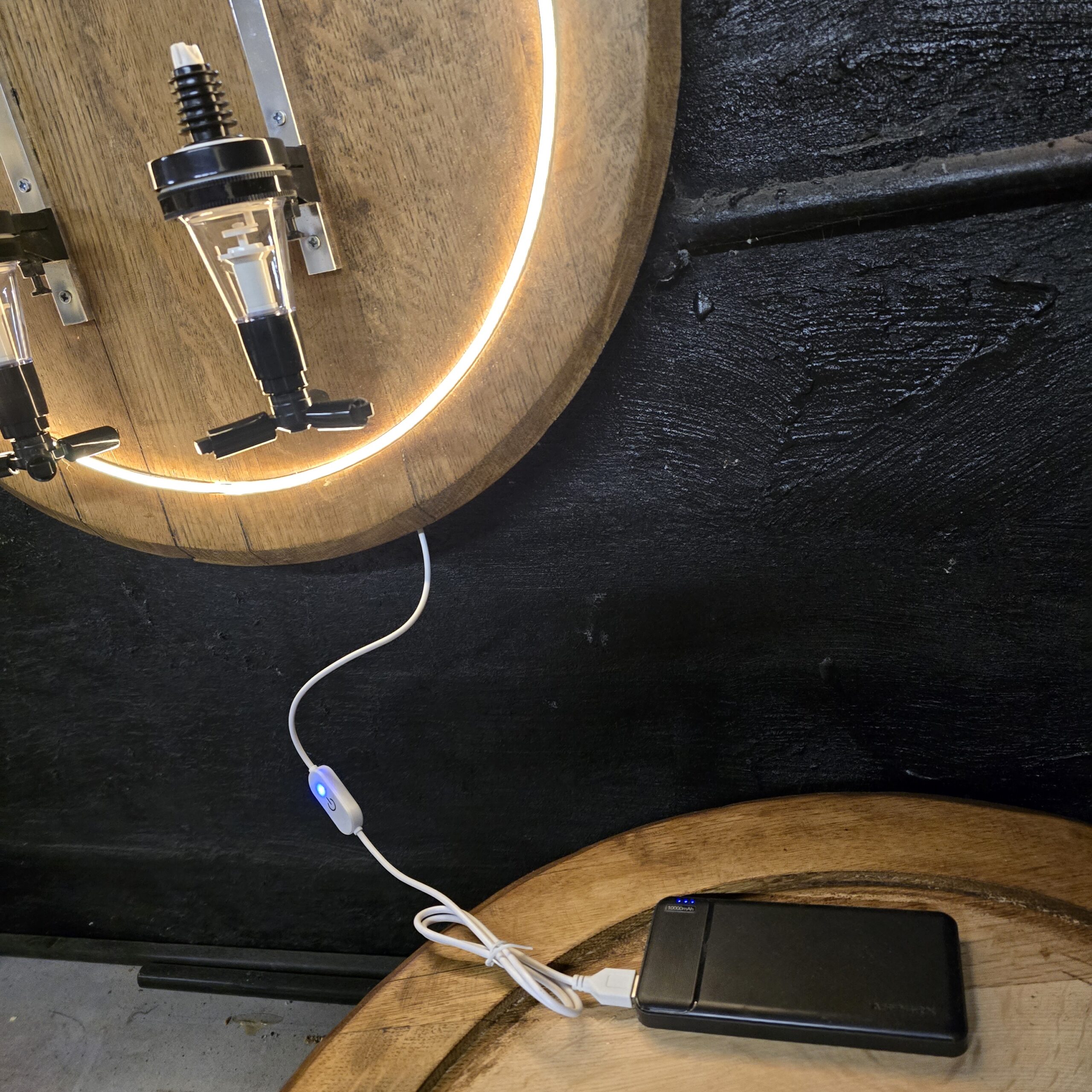 A subtle 6mm recessed LED strip surrounds each optic, casting a warm ambient glow that elevates any space — from home bars and kitchens to man caves and garden rooms. With a USB-powered design and included power bank, there’s no need for in-wall wiring. Simply charge the power bank, connect, and enjoy the convenience of a cordless display anywhere.